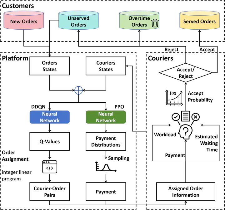 This paper examines discriminatory order-assignment and payment-setting strategies for on-demand food-delivery platforms. We consider a platform that maximizes its profits by strategically bundling orders, assigning them to couriers, and setting personalized payments to couriers based on individual behavioral data accrued from past interactions with the platform. A novel multi-action, multi-agent deep reinforcement learning framework is proposed, where a Double Deep Q-Network is employed to develop discrete order-assignment strategies, and a Proximal Policy Optimization is utilized to determine continuous payment decisions. Our proposed method is validated through a case study using real-world food-delivery data from Hong Kong. Surprisingly, we find that couriers with higher reservation values and, consequently, higher order rejection rates actually receive more orders during peak hours but earn lower wages. The reasons for these counterintuitive results are identified, which expose implicit biases within the discriminatory algorithms employed by profit-maximizing platforms and underscore potential areas for regulatory intervention.